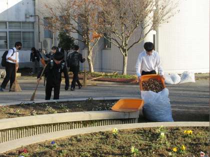 放課後に各クラスの美化委員代表とボランティア生徒で、落ち葉清掃を行いました。