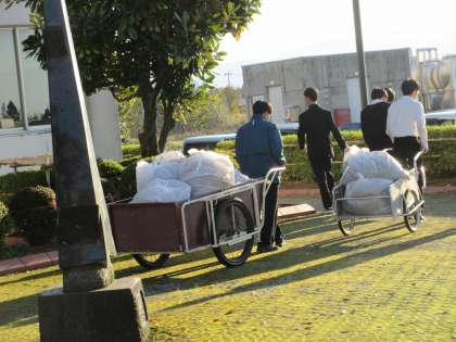 1時間弱の活動で90リットルゴミ14個分の落ち葉が集まり、正面玄関がきれいになりました。