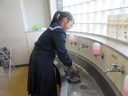 12月4日(水)1年生 生徒信条レース 公開日 2024/12/04 更新日 2024/12/04 1学年 1年生では、学年生徒会と各委員会がコラボして、生徒信条に関連したクラス対抗レースを実施しています。 毎週水曜日は「我ら心篤く生きん」に関連した、美化委員会主催の「水ボラ(水曜ボランティア活動)愛の雑巾がけレース」を実施中です。 終学活後、楽しみながらボランティア活動に参加してくれました。