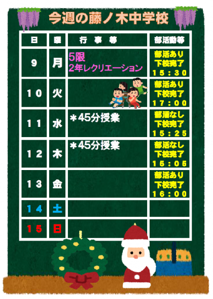 12月9日(月)からの予定