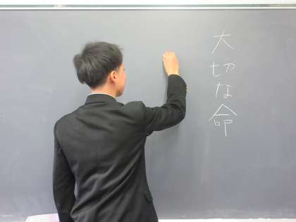 本日5限、3学年では、人権週間の一環として、人権について深く考える活動を行いました。時間の最後には、生徒たちが書いた作文を掲示しました。