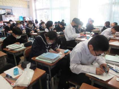 下段:1年2組 数学「コンパス・定規を用いて図形をかこう」