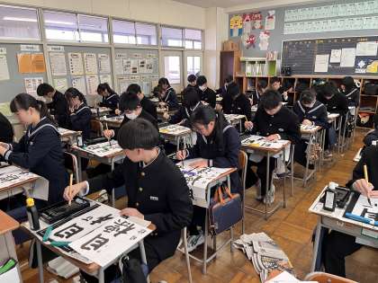 今日の3年2組の授業では、お手本をよく見て集中して書く姿が見られました。