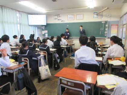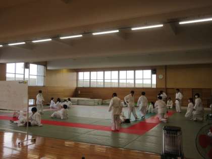 上は1組、体育の柔道の授業です。 下は2組、英語の授業です。