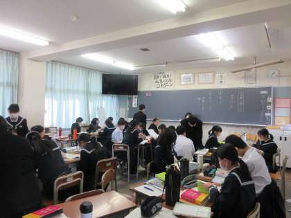 上は3組、国語の授業です。 下は4組、数学の授業です。