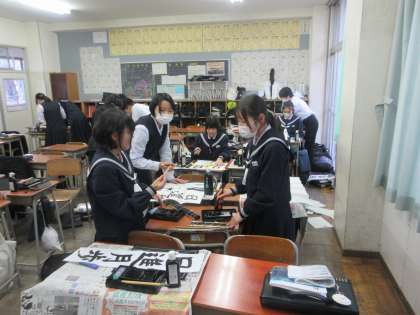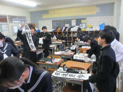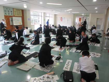 12月17日(火)1年生 書き初め練習会 公開日 2024/12/17 更新日 2024/12/17 1学年 1年生では、教室とコモンスペースに分かれ、全クラス一斉に書き初め練習会を行いました。 国語の授業で練習していたため、てきぱきと準備を終えて、じっくりと時間をかけて書き上げることができました。 本番は1月8日です。素敵な作品がたくさん並ぶことを期待しています。 上段:コモンスペースの様子 中段:1年1組 下段:1年2組