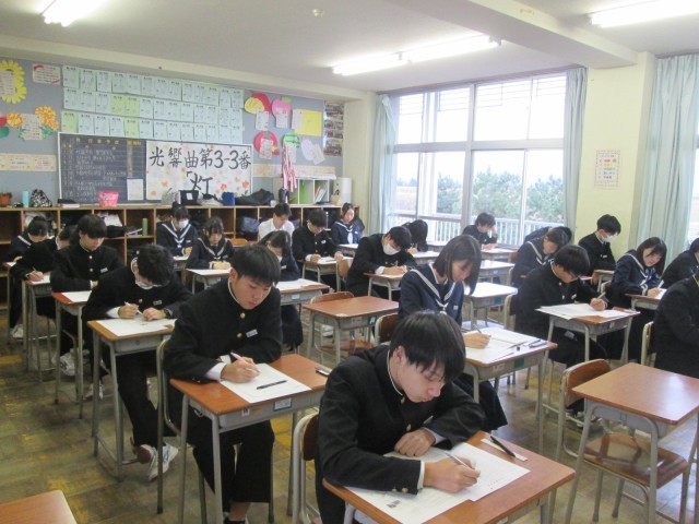 本日3年生は、実力テストのため登校しています。