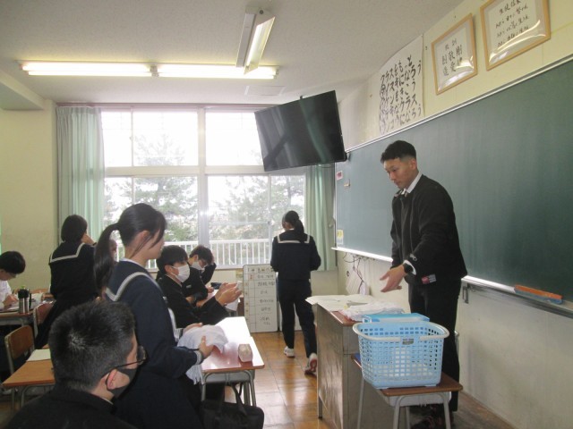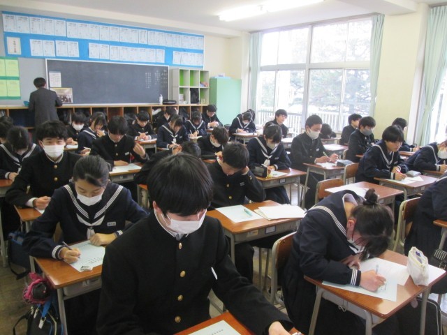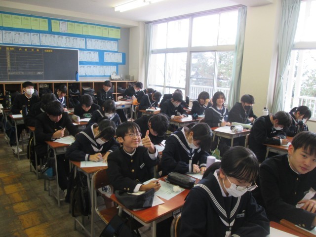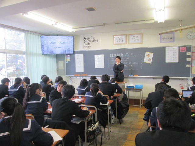 2年生は、個人目標を書いたり、冬休み中の課題を集めたりしています。