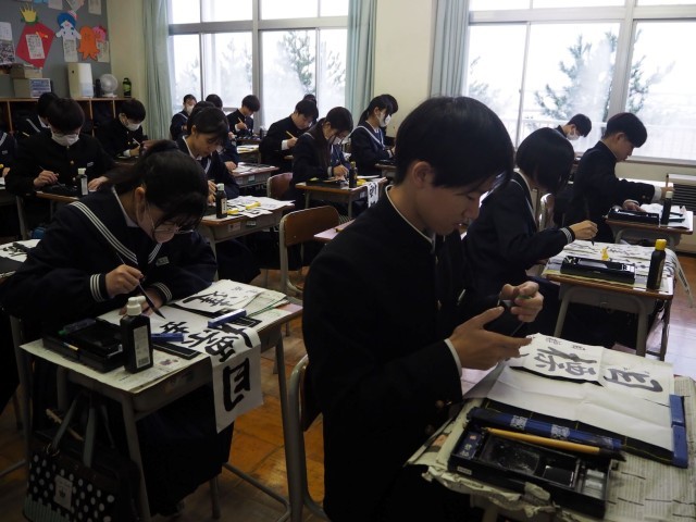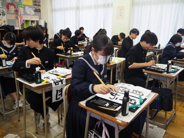 1月8日(水)3年生 書初大会 公開日 2025/01/08 更新日 2025/01/08 3学年 3年生の書初大会の様子です。心を落ち着かせて、集中しながら、中学校最後の書初に一生懸命取り組みました。クラスによっては担任の先生も一緒に書いていたようです。 +2 3学年