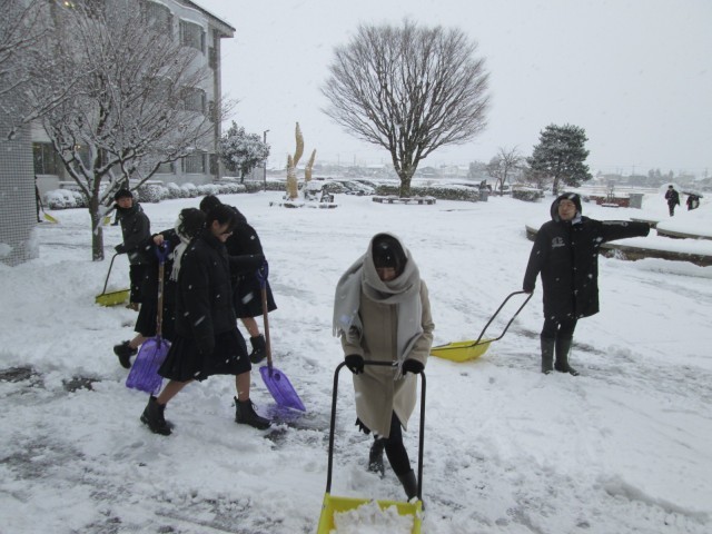1月10日(金) 今朝の除雪 公開日 2025/01/10 更新日 2025/01/10 news 今朝は3年3組が除雪当番です。3年生のみならず、早めに来た1年生の生徒達もボランティアで加わるなど、多くの生徒が協力してくれました。 +1