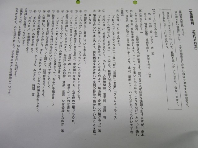 国語では「走れメロス」を題材にして、課題解決学習に取り組んでいます。