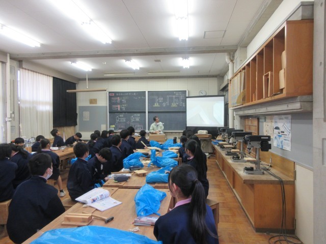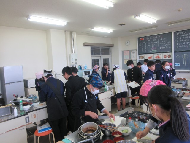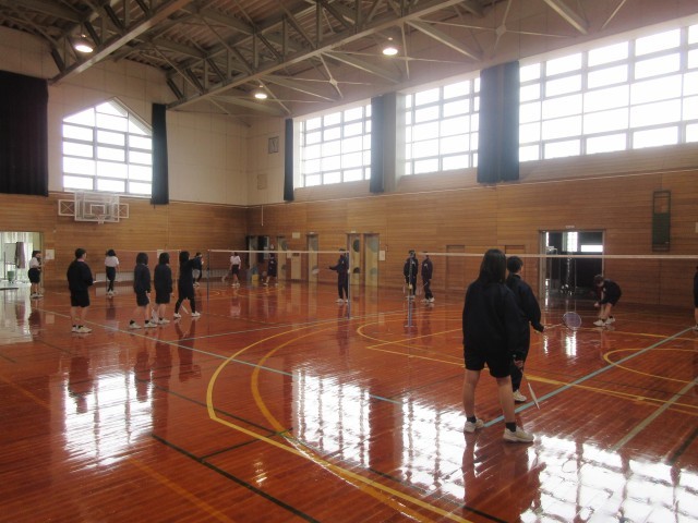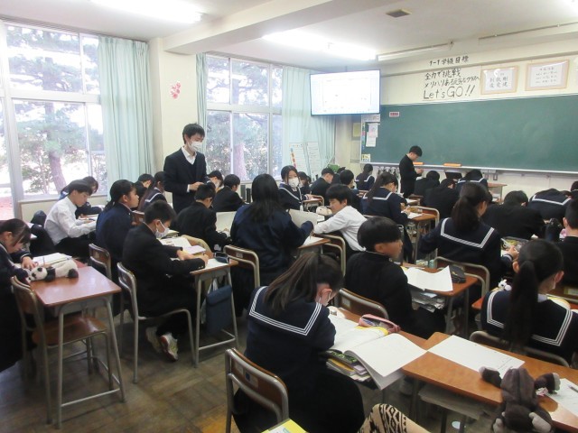 1月23日(木) 1学年 授業風景 公開日 2025/01/24 更新日 2025/01/24 1学年 1組は英語の授業です。英単語の練習をしています。2組は家庭科の授業です。ハンバーグの調理実習、本日調理したのは前半のグループの生徒です。3組は体育の授業です。バドミントンのラリーをしています。4組は技術の授業です。本棚を作るために、板の厚みと釘の長さについて話を聞いています。 +1 1学年