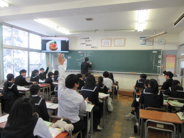 2組は家庭科の授業で、調理実習の振り返りをしています。