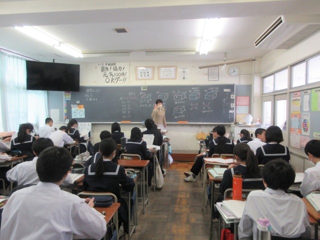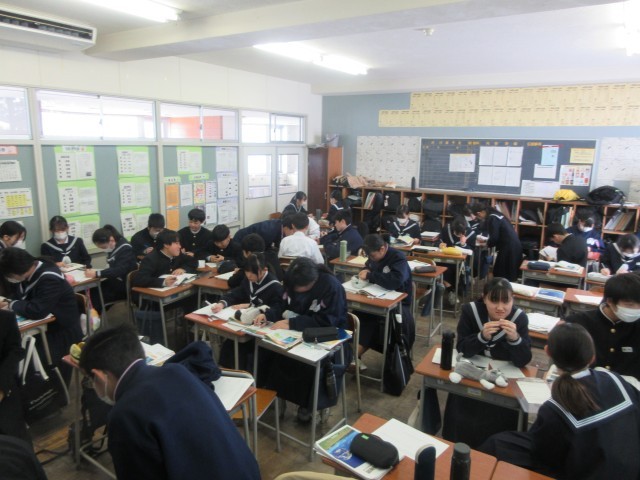 2月20日(木)1年生 授業風景 公開日 2025/02/20 更新日 2025/02/20 1学年 テスト前の授業、どのクラスも熱心に取り組んでいます。1組は、社会の授業です。友達と教え合いをしています。2組は、理科の授業です。地震の学習をしています。3組は、数学の授業です。図形の学習をしています。4組は、国語の授業です。発表会の準備をしています。 +1 1学年