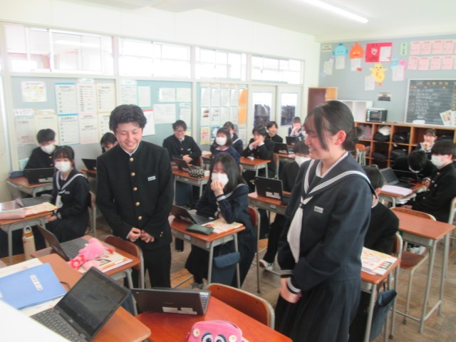 3年生の家庭科の授業では、親学びプログラムを使って、よりよい家族関係を築くためのコミュニケーションの取り方について考えています。