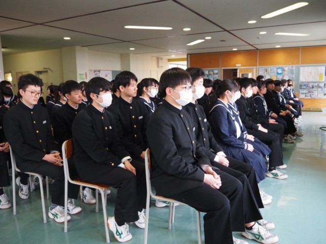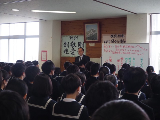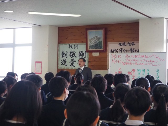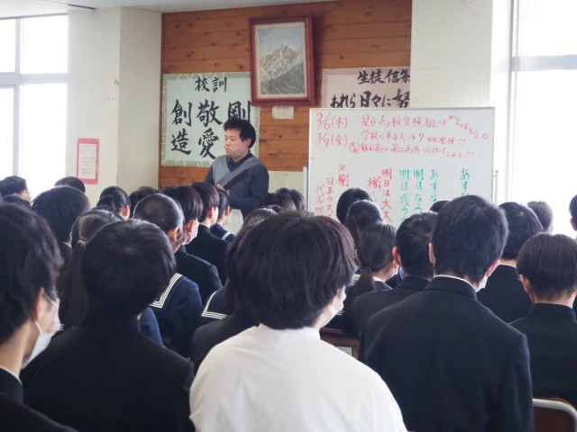 校長先生から激励の言葉をいただき、進路指導主事、学年主任から注意事項の説明がありました。
