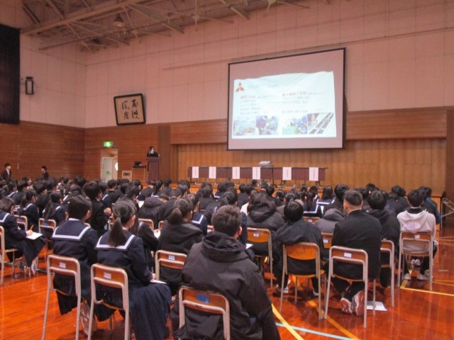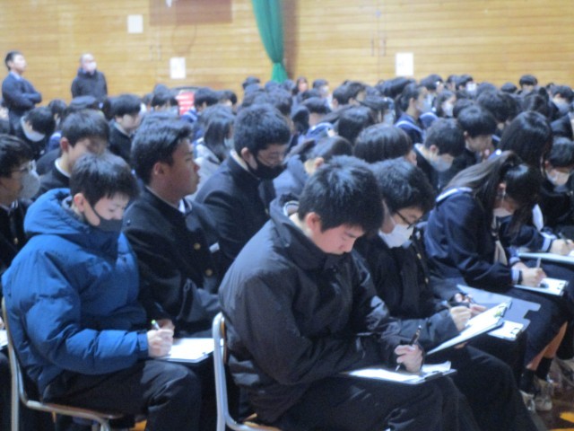3月6日(木)2年生 「高校生の先輩に学ぶ講演会」 公開日 2025/03/06 更新日 2025/03/06 2学年 今日は、6校の県立高等学校から、現在高校2年生の藤ノ木中卒業生が来校し、学校紹介や中学生へのアドバイス等を話してくださいました。身近な先輩の言葉ということもあり、生徒たちはいつにも増して真剣に話を聞いたり、メモを取ったりしていました。 来年度の進路選択もそうですが、5月末から申込み開始予定の「オープンハイスクール」を選ぶ上でも、参考にしてほしいと思います。 +1 2学年