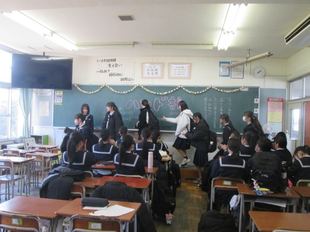 放課後、部活動送別会を行いました。各部で部員から先輩方へ一言述べたり、色紙を渡したりするなど、思い出に残る時間を過ごしました。