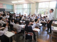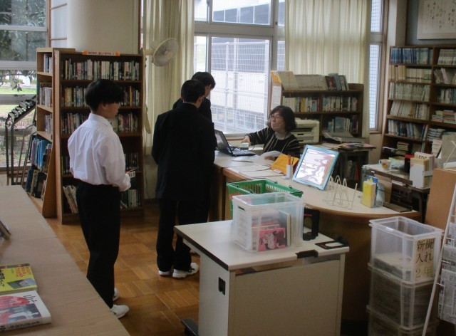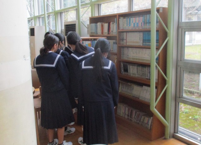1年生は、クラスごとに図書室の利用の仕方を確認しました。図書館司書の先生が説明した後、実際に読みたい本を探して、初めての図書貸し出しを経験しました。