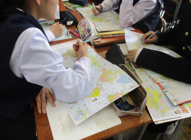 1年生は、社会の授業で「国名ビンゴ」に取り組みました。