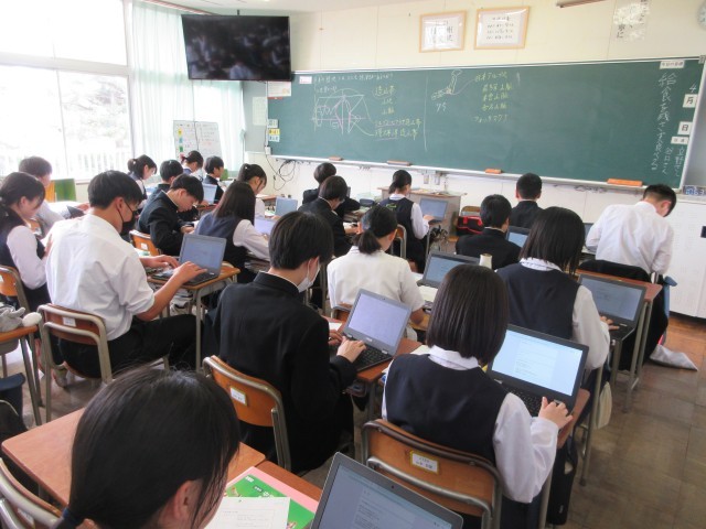 1枚目:1組社会・・・タブレットを使って授業のまとめを行っています。