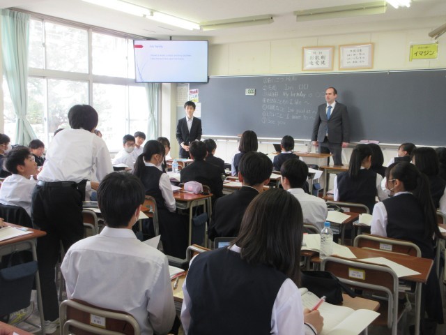 4枚目:4組英語・・・新しく赴任したALTの先生に英語で自己紹介中です。