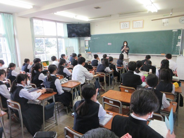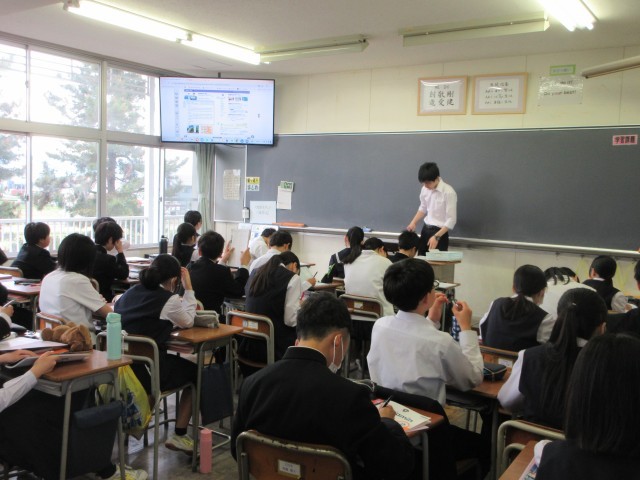 5枚目:3組 英語で電子黒板に教科書を映して、単語を確認しています。