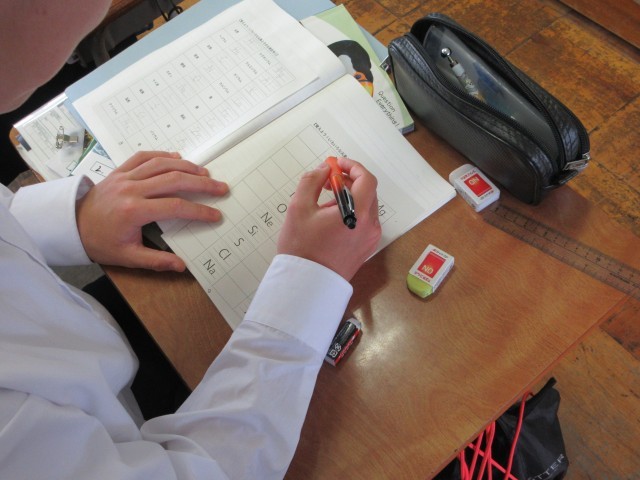 1、2枚目:1組 理科で元素記号を覚えようとしています。
