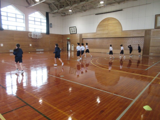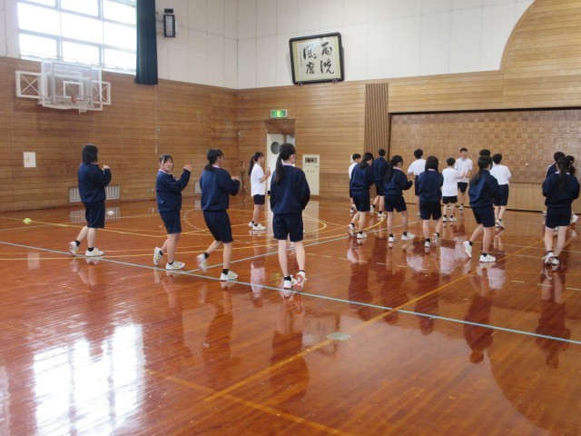 3、4枚目:2組 体育で準備運動をして、シャトルランに挑戦しています。