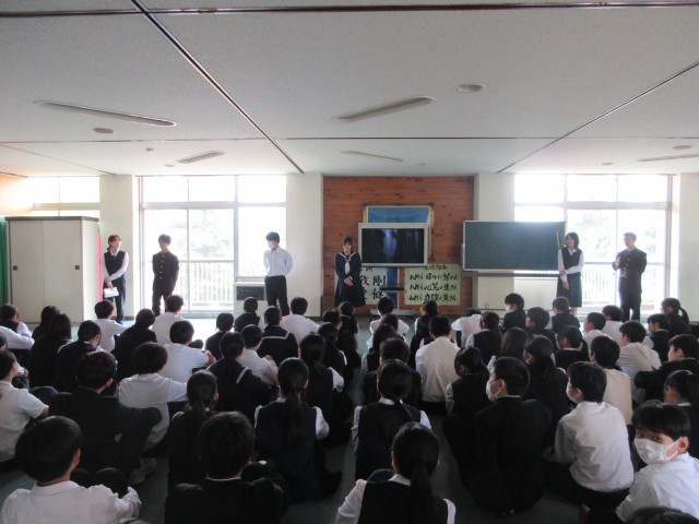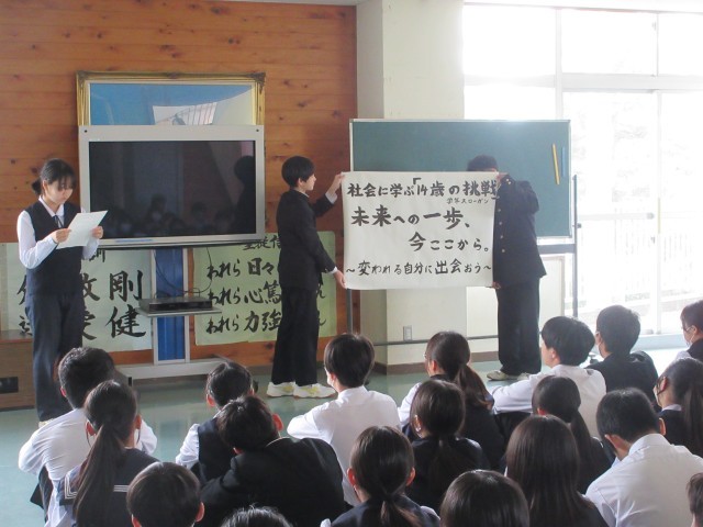 14歳の挑戦 公開日 2025/05/13 更新日 2025/05/12 2学年 本日、14歳の挑戦の実行委員の紹介、スローガンの発表がありました。スローガンは、学年での投票の結果「未来への一歩、今ここから。~変われる自分に出会おう~」となりました。7月に向けて少しずつ動き出しています。 +1 2学年