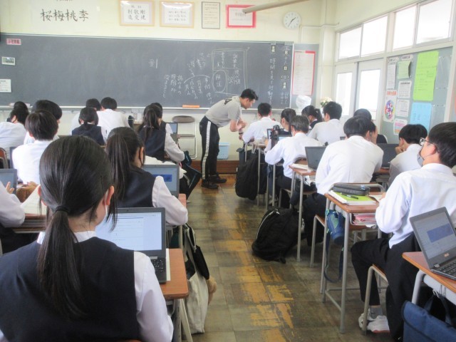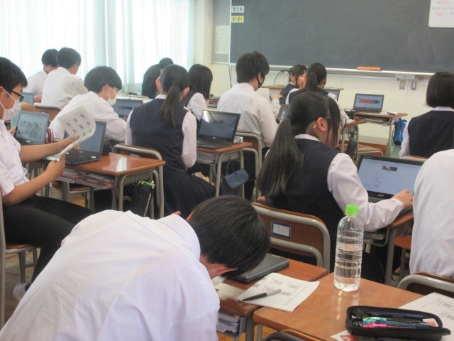 本日は夏季休業中に実施されるオープンハイスクールに関するミーティングを行いました。まず全員で進路担当から話を聞き、その後各学級で担任の先生からより詳しく説明を受けたり、タブレットで調査活動をしたりしました。生徒諸君は多少緊張気味ながら、興味をもって話を聞いていました。