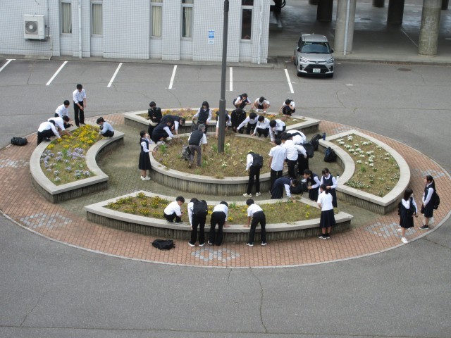 暑い中一生懸命花壇の除草をしていました。