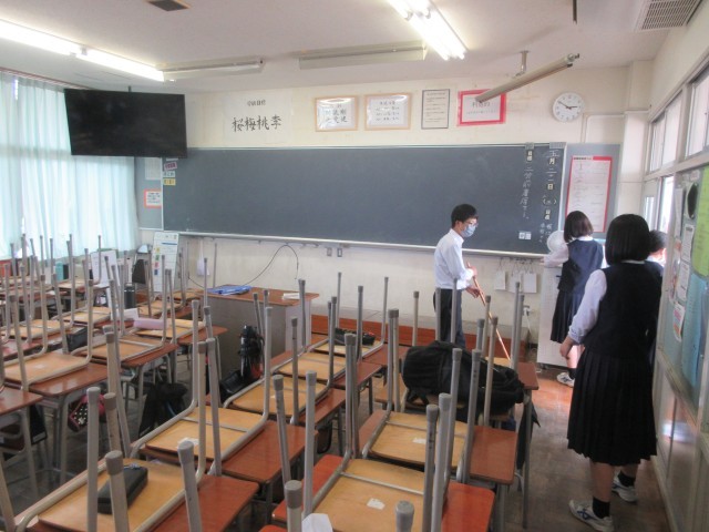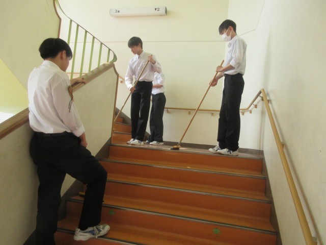 本日は清掃がある日でした。15分間、担当の場所を綺麗にしようと真剣に取り組んでいました。