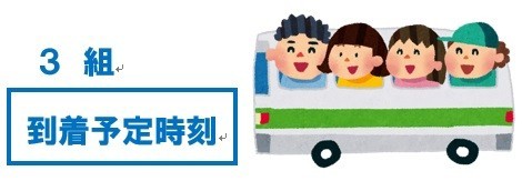 現在3年3組のバスは小矢部ICを通過しました。帰着予定時刻は18時40分頃になります。