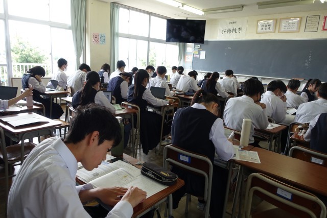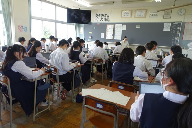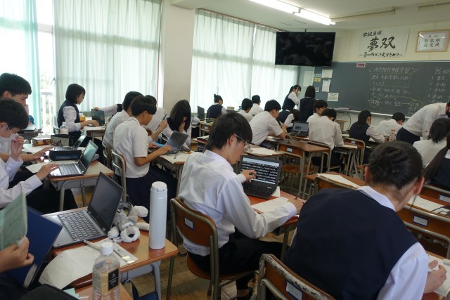 本日は修学旅行で学んだことを胸に刻み、今後に生かして行くため、「平和学習」と「歴史学習」の二つの面からレポートを作成しました。修学旅行のしおりや現地で集めたパンフレット等を参考に、真剣な態度でレポートに取り組みました。