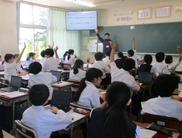 6月4日(水)1学年 授業風景 公開日 2025/06/04 更新日 2025/06/04 1学年 1年生の授業の様子を紹介します。【画像1】保健体育:健康と食生活【画像2】理科:物の見分け方を考えよう【画像3】数学:「正負の数」分配法則について考えよう【画像4】英語:Unit2-1 本文を音読しよう +1 1学年