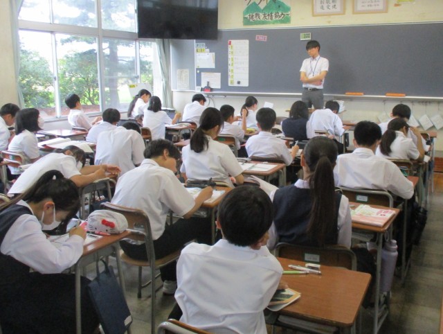 6月23日(月)1学年 授業風景 公開日 2025/06/24 更新日 2025/06/23 1学年 1年生の授業の様子を紹介します。【画像1】英語:スピーキングテストにチャレンジしよう【画像2】理科:テスト範囲の復習をしよう【画像3】社会:縄文・弥生時代の日本列島の交易と交流【画像4】数学:テスト範囲の復習をしよう +1 1学年