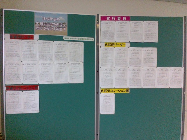 体育大会3年生リーダー立候補者 公開日 2025/07/02 更新日 2025/07/02 3学年 体育大会実行委員、団リーダー、デコレーション係にたくさんの生徒が立候補してくれました。最後の体育大会にかける熱い意気込みを感じます。リーダーはもちろん、3年生全員で体育大会を成功させましょう。 3学年