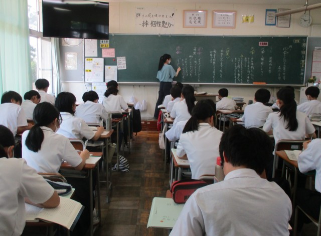 7月7日(月)1学年 授業風景 公開日 2025/07/07 更新日 2025/07/07 1学年 1年生の授業の様子を紹介します。【画像1】英語:疑問詞を使った疑問文をつくろう 答えよう【画像2】国語:「比喩で広がる言葉の世界」【画像3・4】保健体育:サッカー +1 1学年
