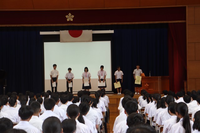 まず、夏休み中に活躍し、入賞した部活動の受賞報告会を行いました。