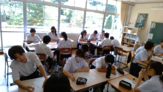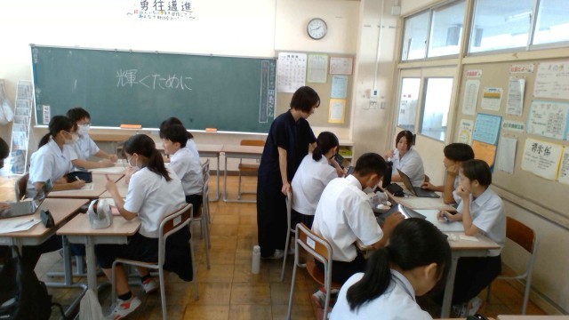 2学年学級活動では、合唱コンクールの目標について話し合っています。とても和やかな雰囲気です。
