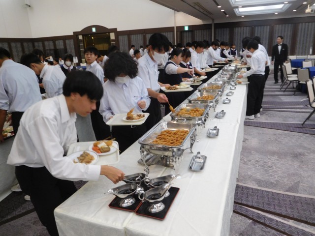 1日たくさん歩きました。夕食をたくさん食べました。最後に明日の班別学習に向けて班長会議を行いました。