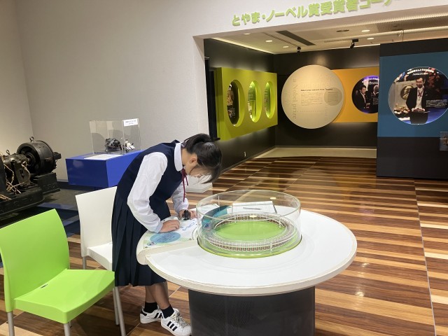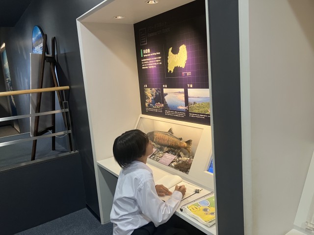 科学博物館にて、体験だけでなくしっかりメモを取り学習につなげています。