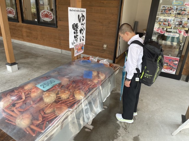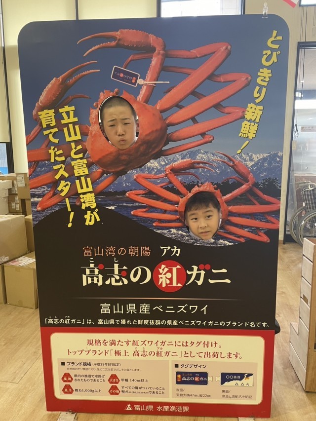 新湊きっときと市場で売られている蟹が気になるようです。