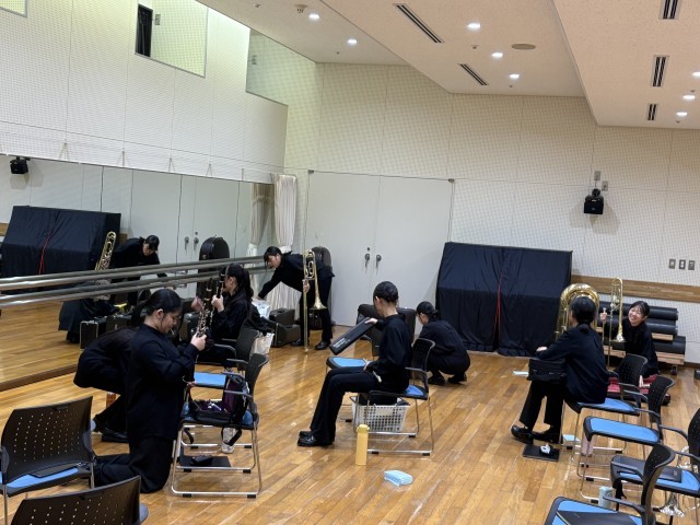 第30回富山県中学校文化祭に吹奏楽部が出演しました。他校のお手伝いや音出しをして、出演を待っています。沢中は大トリ、3年生は、最後の出演です。