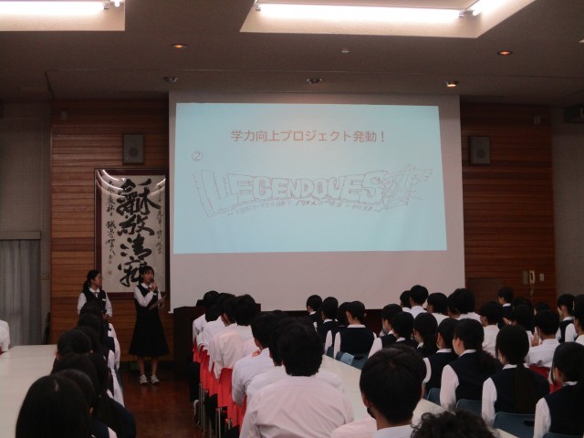 また、学年生徒会から学年企画の紹介をしてもらいました。学力向上を目指した"LEGENDQUEST"です!コツコツ積み重ねていきましょう。