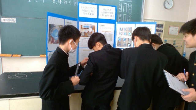 理科室では、夏休みの「自由研究」が展示されています。研究の様子、成果がよく伝わってきます。