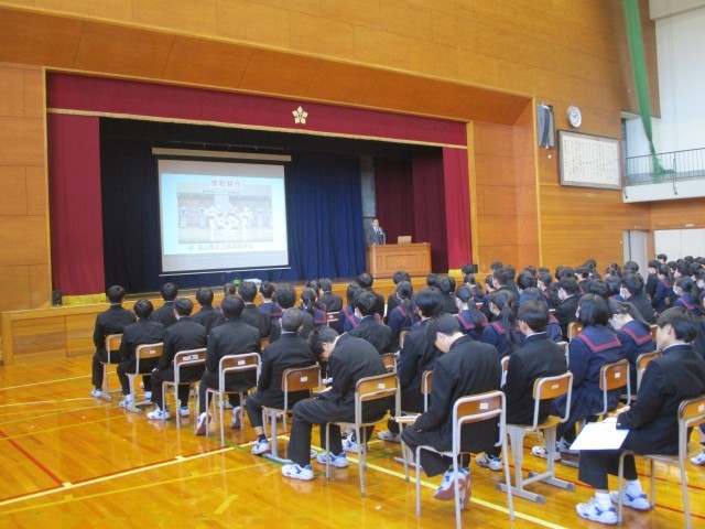 午後に上級学校説明会を行いました。県立高校の先生方にご来校いただき、学校の特色等を紹介していただきました。生徒たちはメモを取り、真剣な表情で話を聞いていました。今回の話を参考にして、再び自身の進路に向き合いましょう。