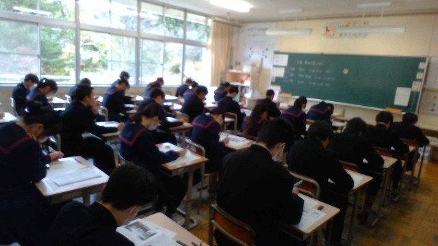 2学年、2学期末考査2日目です。今日は、美術、技術・家庭、社会です。問題数も多く、だんだんと難しくなっていますが、真剣に行っています。