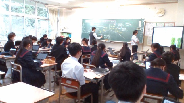 数学ではコンパスを使った作図を学んでいます。社会では発表をしていました。